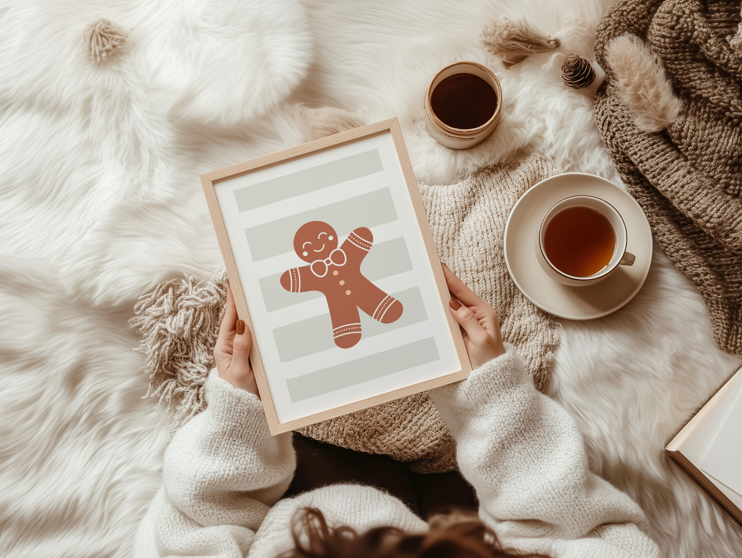 Uroczy plakat świąteczny z pierniczkowym ludzikiem.