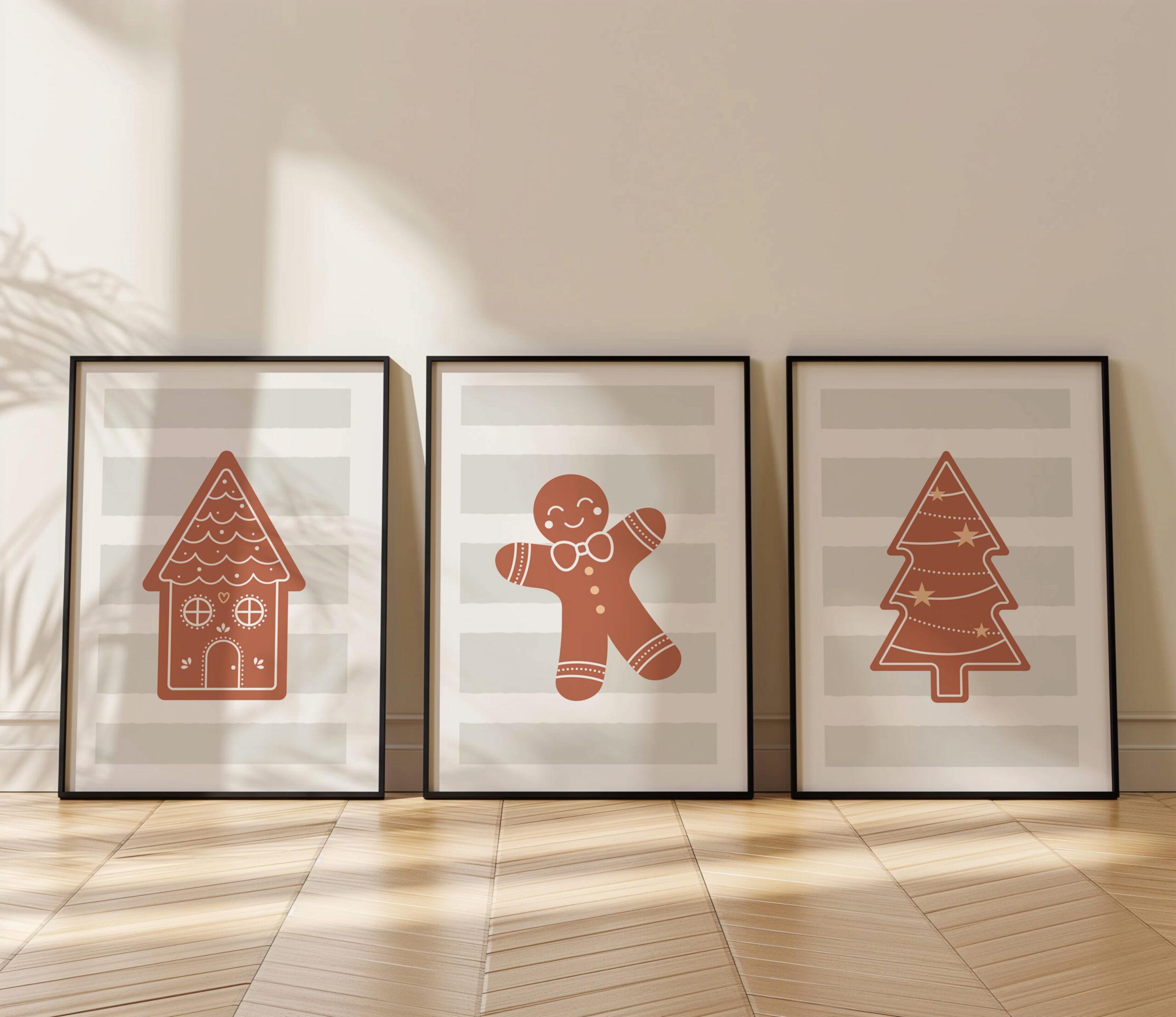 Zestaw 3 plakatów świątecznych z pierniczkami.