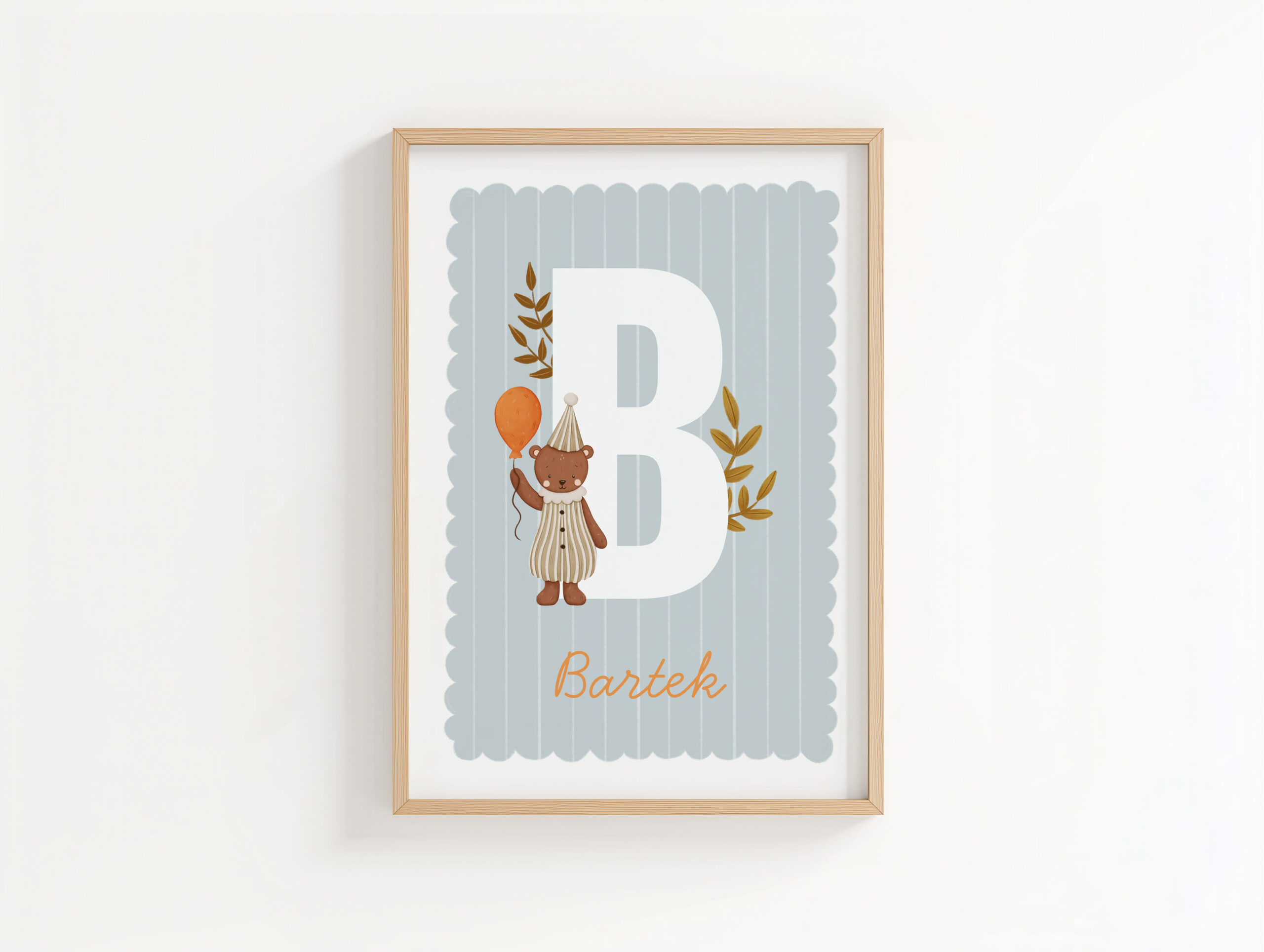 Plakat do pokoju dziecięcego z imieniem i uroczym motywem misia.
