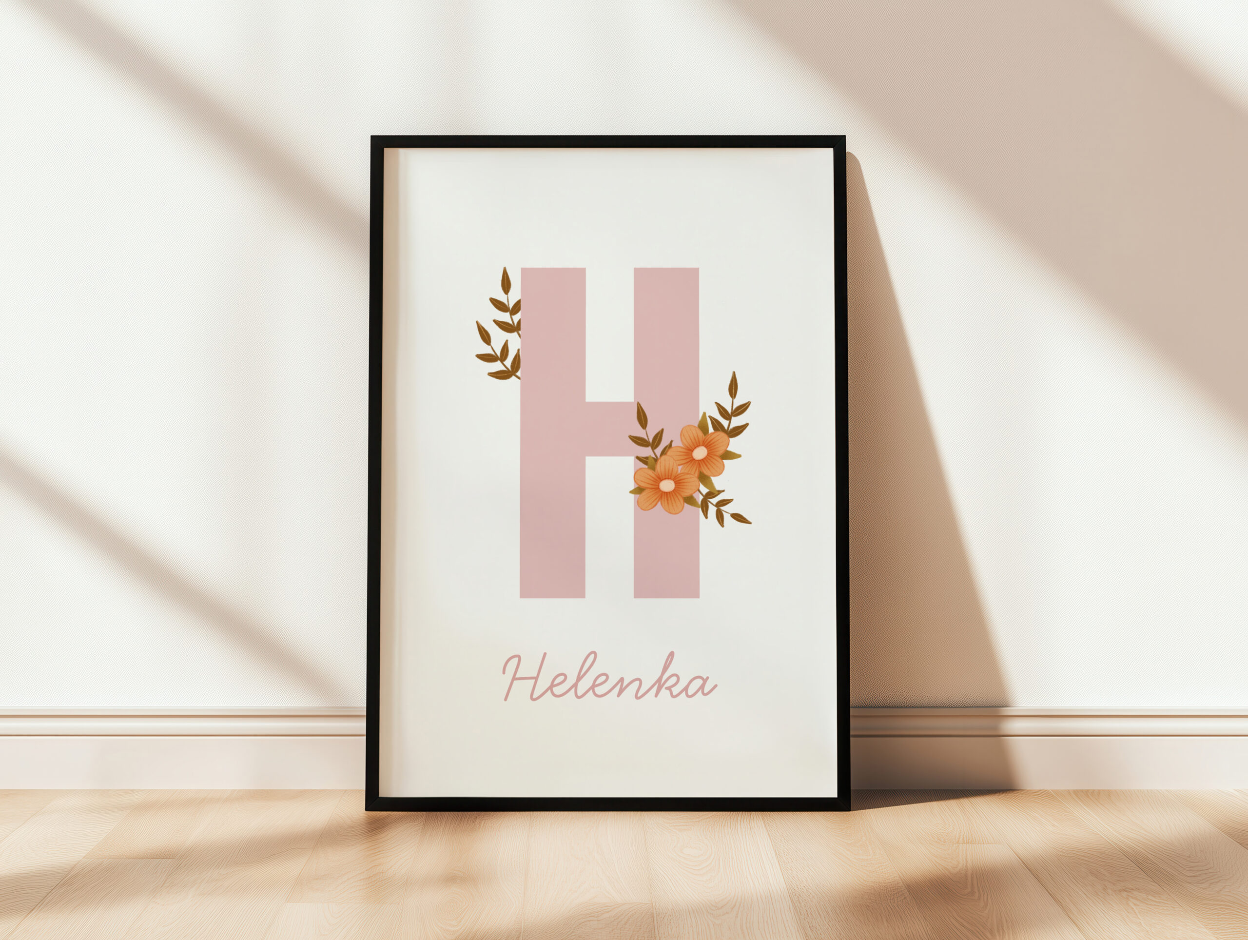 Plakat do pokoju dziecięcego z imieniem i uroczym motywem kwiatów.