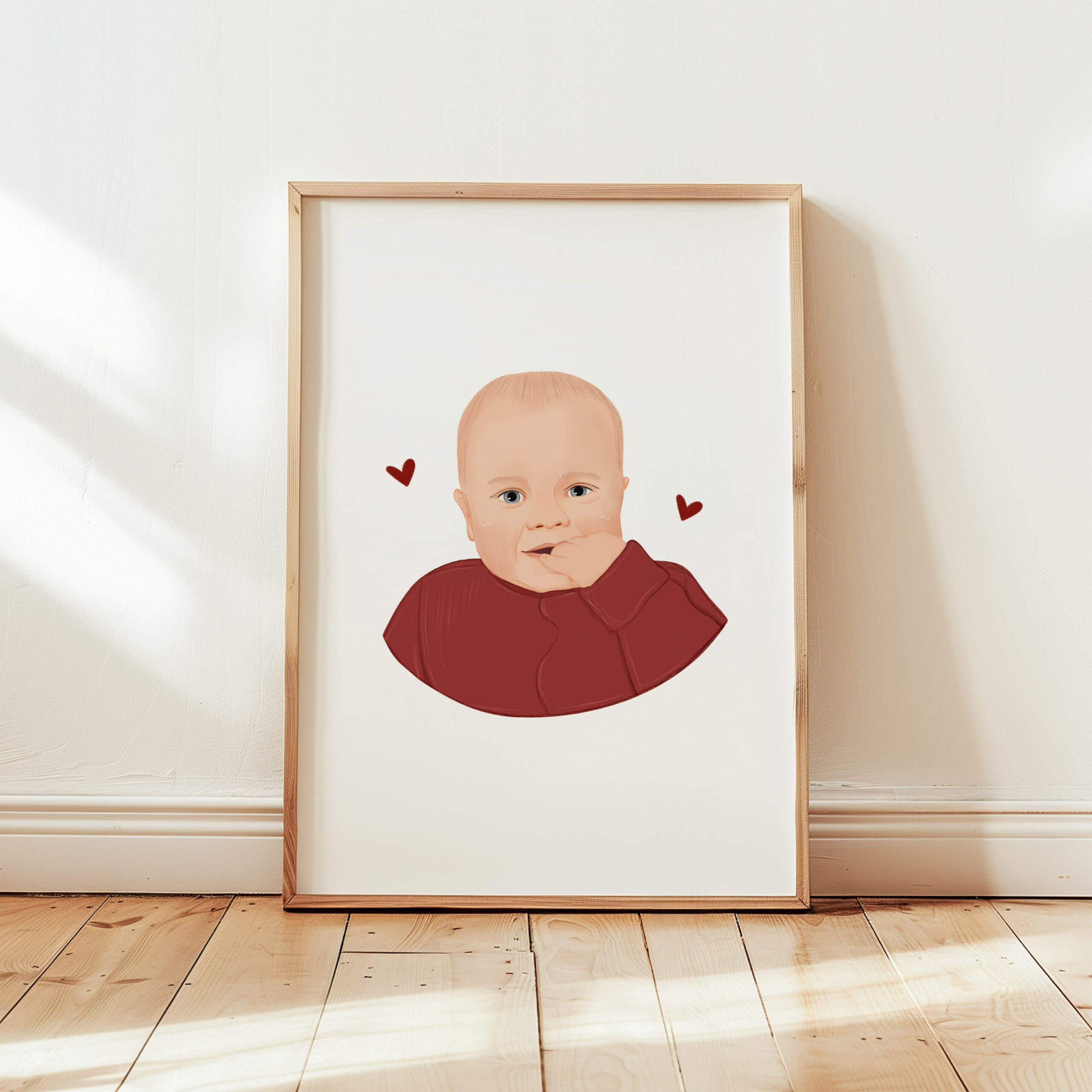 Na portrecie może zostać umieszczone imię, data, dane dziecka lub specjalna dedykacja.