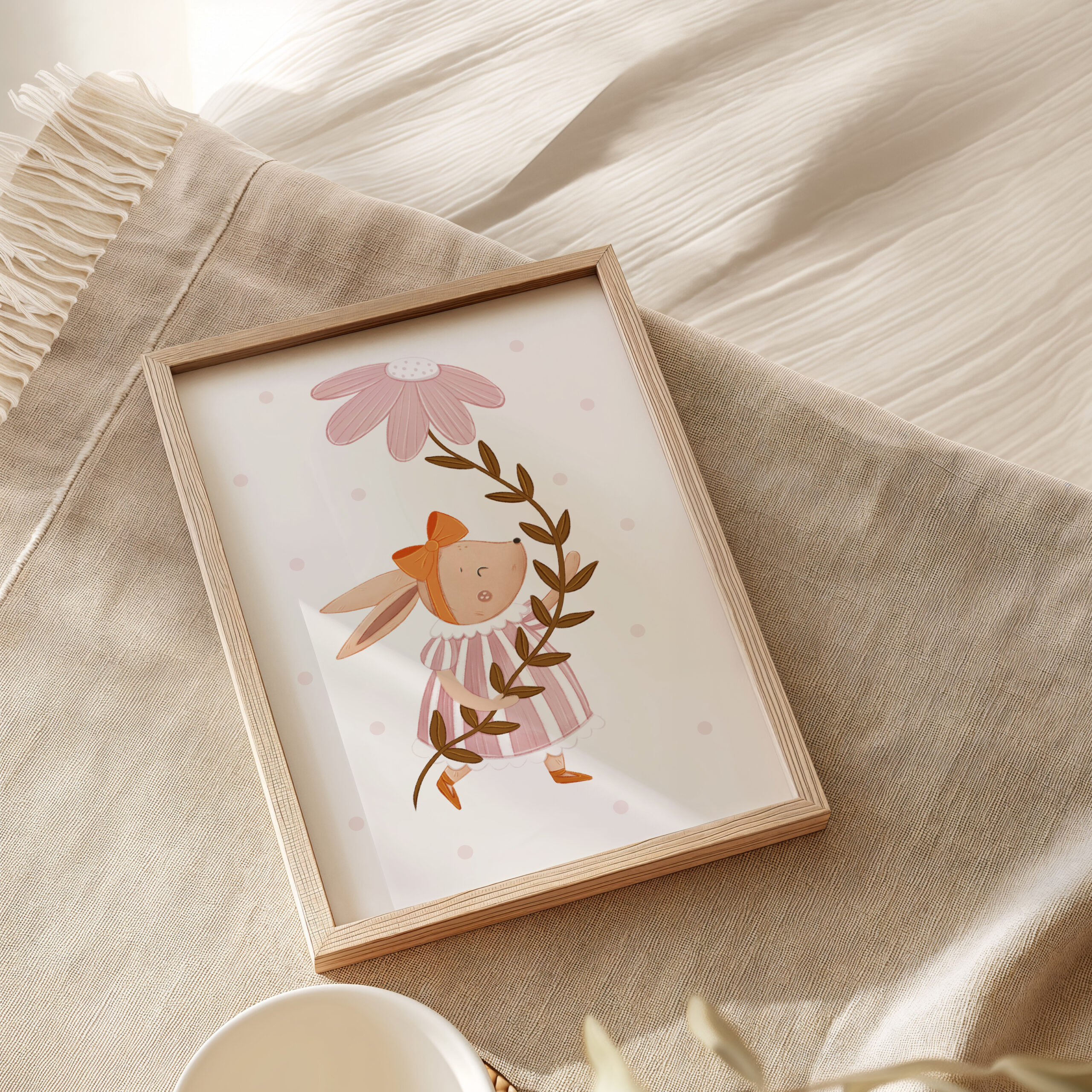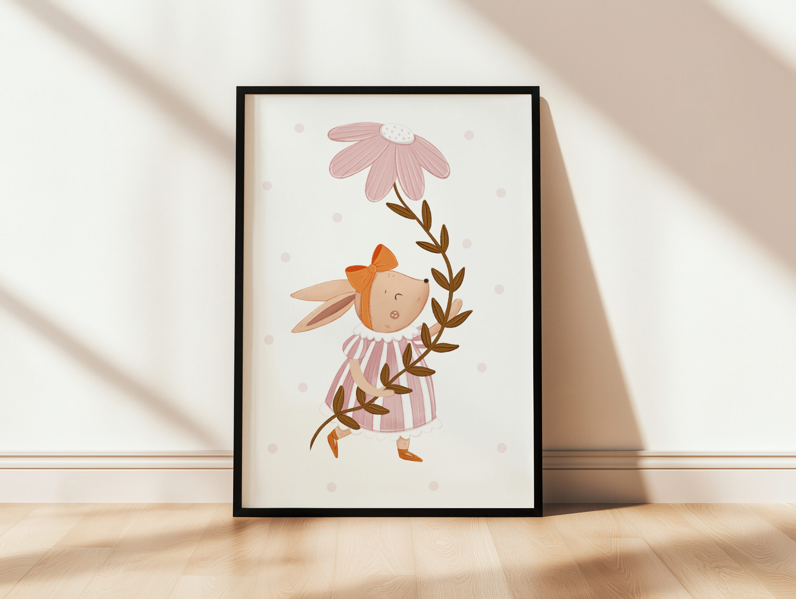 Plakat do pokoju dziecięcego z uroczym zajączkiem.